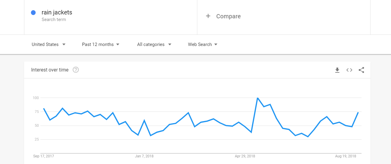 Rain jackets were searched the most in the months of April and May when monsoons are usually highly active:
